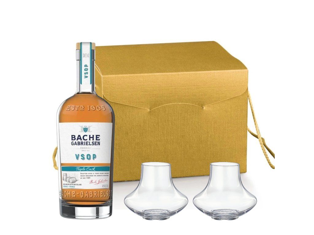 Dárkový box Cognac Bache VSOP Tripple Cask 0,7l + 2x degustační sklenka